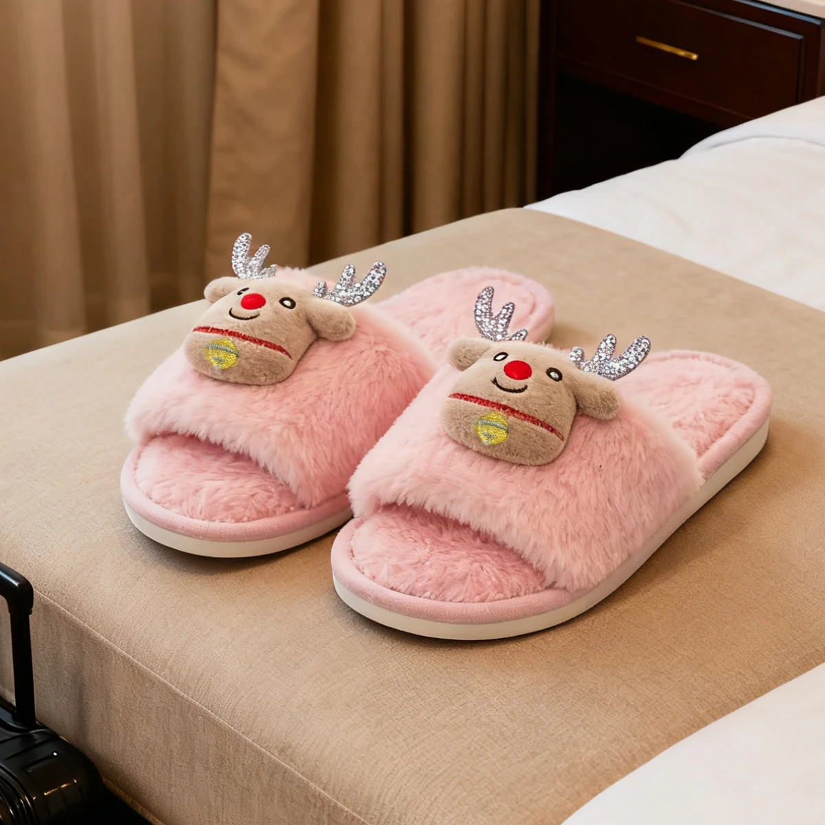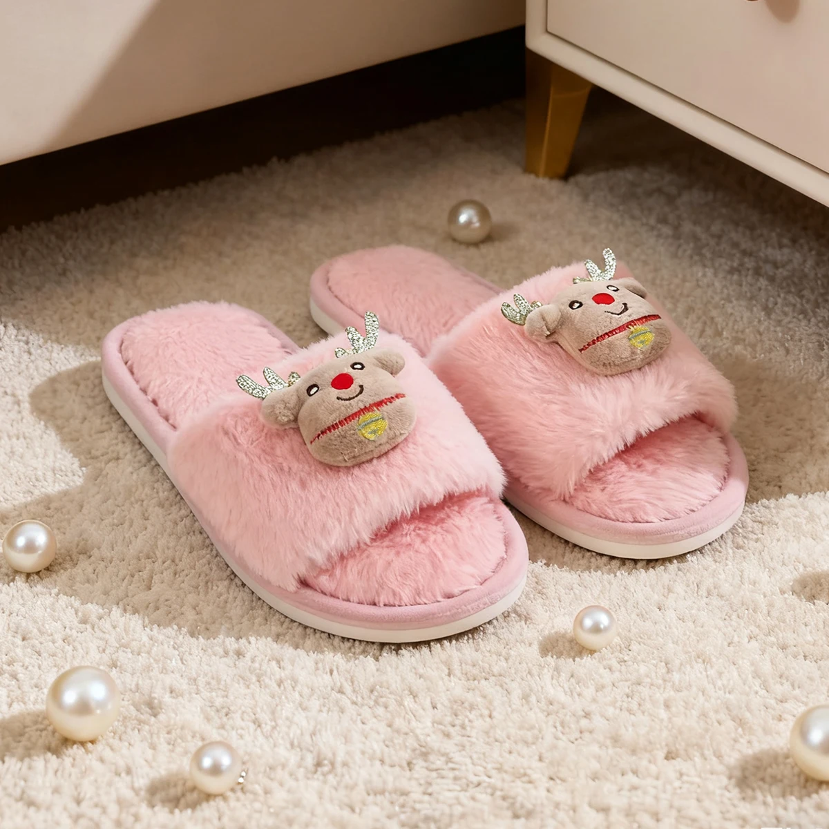Be the first to review “Ladies’ Home Slippers Autumn/Winter Christmas Cute Deer Pattern Plush Comfortable Open-Toed Indoor Slippers”